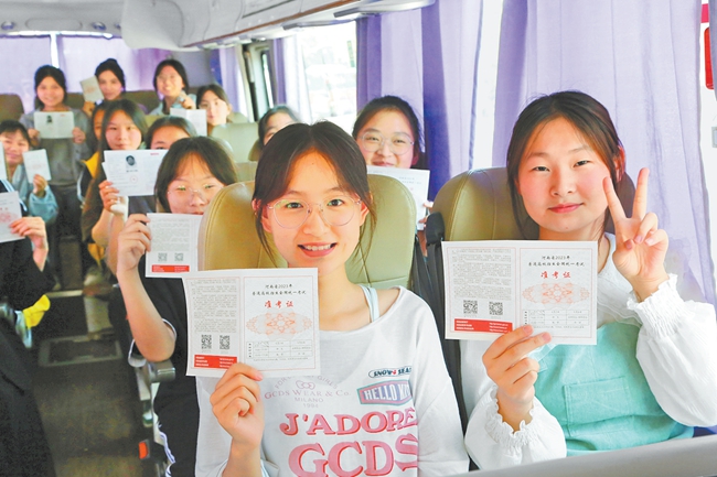 6月6日,宝丰县第一高中校区,考生乘坐“爱心助考”车前往考点,提前熟悉环境。王双正 摄
